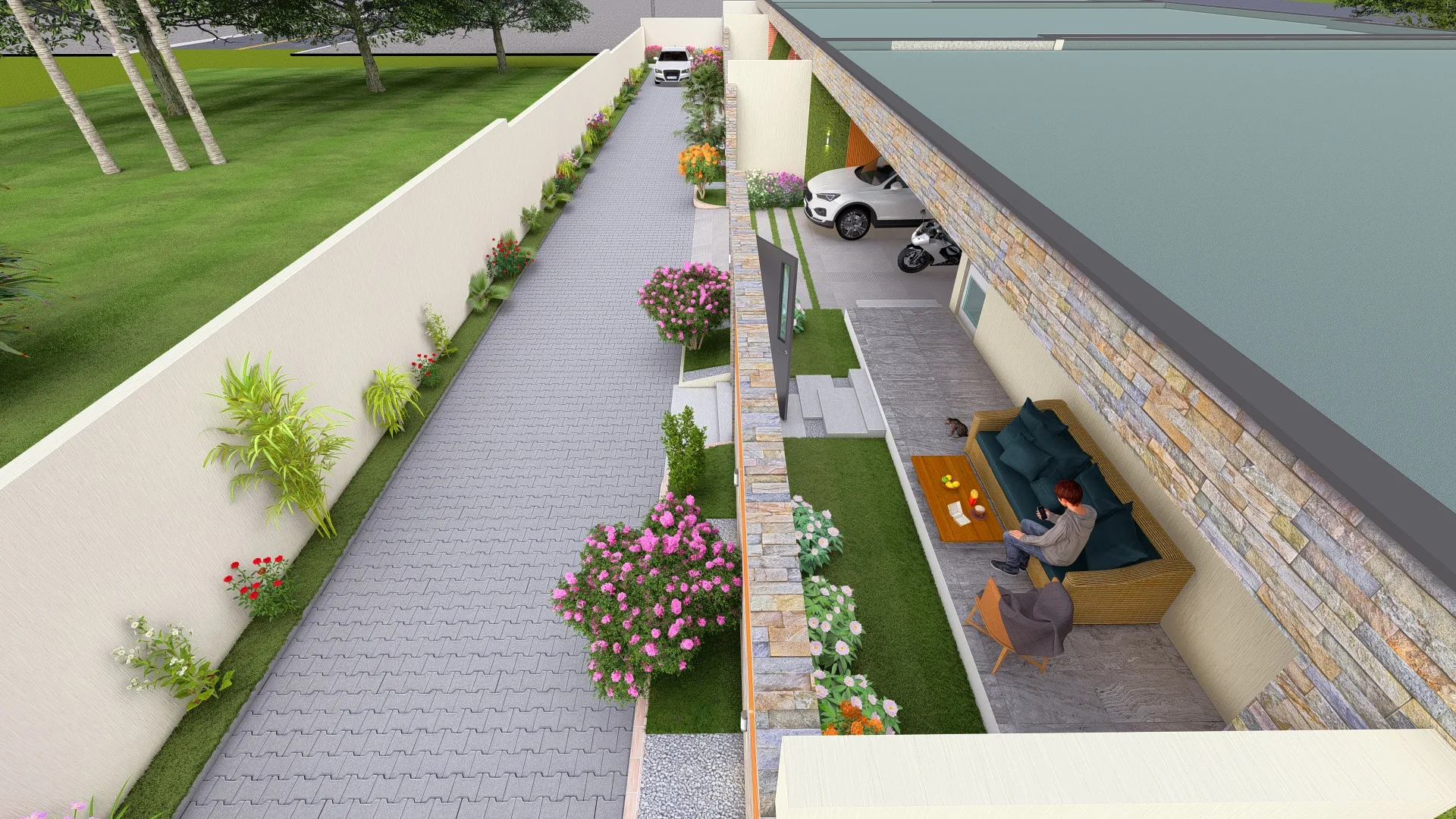 Deux Cours : Les deux cours ajoutent des espaces complémentaires pour le jeu et la détente, tout en offrant une ambiance paisible.